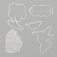 I created a matching card set for today's projects. For my first card, I began by using the Hummingbird Framelits Dies to create a mask so that I could add an embossed background. I mixed some Flirty Flamingo Re-inker and Powder Pink Re-inker with some Shimmery Embossing Paste and created an ombre textured background. You will also notice that I tucked a few printed flowers into my layers. These are from the beautiful All My Love Designer Series Paper (DSP).